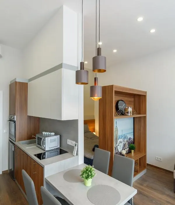 La propriété Central City Apartment fournit également une cuisine complète dotée d'un four et d'un lave-vaisselle. L'hébergement se trouve à 650 m de l'arrêt de bus le plus proche d'Urania.